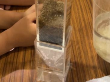水をきれいにする実験では、多くの驚きの声が上がりました。