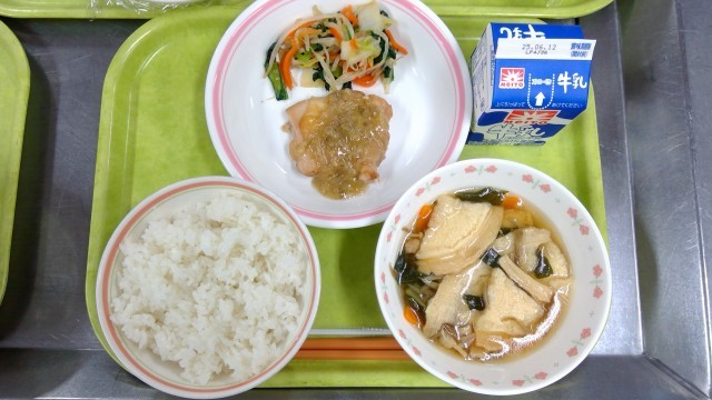 せんべい汁に使われるせんべいは、「南部せんべい」といい、青森県南東部~岩手県北部にかけて食べられている伝統食品です。せんべいは汁用の煮崩れしにくいものを使いましたが、給食だと出来上がりから食べるまでに時間があるので少し汁を吸いすぎてしまうのが残念でしたが、味はおいしくできたのでよかったです。