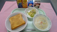 【献立】油麩丼、飲むヨーグルト、おくずがけ、がんづき ※写真は低学年の分量です。...