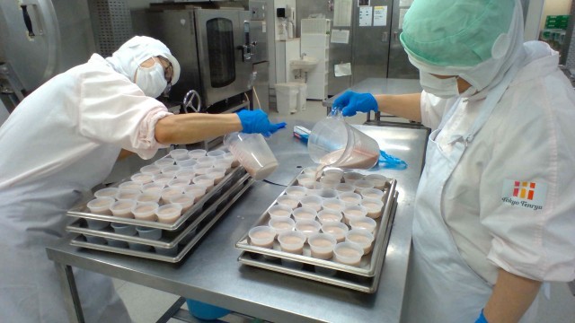 凍り豆腐は、豆腐を凍らせたのちに乾燥させてつくるため、長く保存ができ、味がしみこみやすいことが特徴です。カルシウムなどの栄養もたくさんつまっています。子供たちは、食感がおもしろい、チリソースがおいしいとよく食べていました。野沢菜漬けは、長野県で冬の保存食として親しまれた漬物です。今日は野沢菜漬けによくあう大根とキャベツを使ったあえ物を作りました。野沢菜漬けが好き、という人は食べやすかったようです。ゼリーに使う寒天は、天草という海藻を煮て凍らせたのちに乾燥してつくります。茅野市では約200年前から寒天づくりが始まり、現在その生産量は全国1位です。この寒天と牛乳、いちごジャムを使って、おいしいデザートにしました。