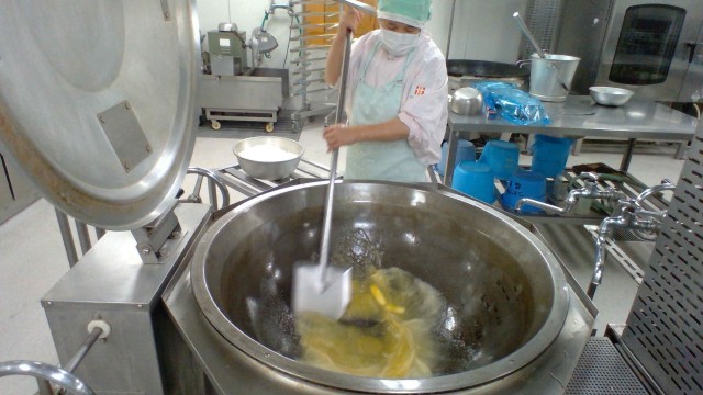 今日のくだものは、シャインマスカットとナガノパープルという2種類のぶどうを食べ比べてもらいました。ぶどうは好きな人が多いのですが、どちらかというとシャインマスカットの方が人気のようでした。クラムチャウダーは、給食室でバターを溶かし、小麦粉を入れて炒めて丁寧に作ったホワイトルウでとろみをつけています。今朝から急に秋らしく気温が下がったので、温かいスープがよりおいしく感じられました。