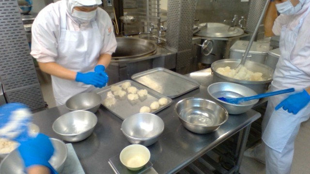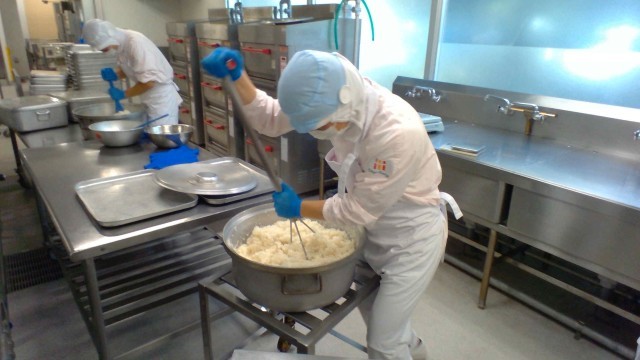9月23日の秋分の日をはさんで前後3日間は「秋の彼岸」となります。この時期に食べるのは「おはぎ」です。萩の花が咲く季節にちなんで「おはぎ」と呼ばれます。給食室では、朝からもち米を炊いて少しつぶし、1つ1つ丸め、約1200個のおはぎにきなこと黒ゴマをまぶしたので、朝から大忙しとなりました。子供たちはきなこが好きな人の方が多かったようです。生のプルーンも秋の短い間だけ食べられるくだものなので、年に1回今の時期だけ登場しています。