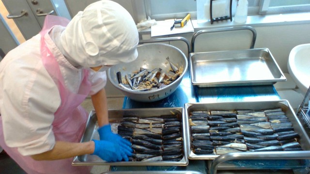 今日は秋が旬の秋刀魚を昆布と一緒にじっくりと煮込みました。調味料にはしょうゆと砂糖の他に酢も入れるので、小骨は気にならないくらい軟らかく仕上がります。昆布と一緒に煮るので「松前煮」といいますが、この昆布も味がしみこんでおいしく食べられます。魚は苦手という人もいますが、頑張っている様子がみられました。中には、骨も全部食べた!という人も。炒り鶏は、鶏肉とにんじんやごぼう、たけのこ、里芋などの根菜類を炒め、だしと調味料で煮含めました。野菜たっぷりでしたが、子供たちはよく食べてくれていました。
