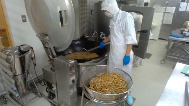 「山坂達者飯」は、大豆やさつまいも、ちりめんじゃこを唐揚げにして甘辛いタレでからめ、ご飯に混ぜた料理です。歯やあごを鍛える料理として、鹿児島県の給食に取り入れられました。もともと「山坂達者」とは、薩摩藩で行っていた鍛錬法で、山や坂を歩いて日ごろから足腰を鍛え、心身を鍛錬しておくことを意味しています。きびなごの唐揚げも骨ごと揚げるので、噛み応えのある料理です。最近では、やわらかい食べ物が増え、かむ回数が減っているので、よくかむことを意識して食べることが大切です。教室では30回かんだ!と数えながらよくかんで食べる様子がみられました。