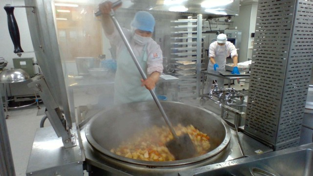 東京の木々も赤やオレンジ色、黄色とさまざまな色に紅葉しています。今日のもみじ焼きは、すりおろしたにんじんとマヨネーズを混ぜ合わせて、紅葉のような鮮やかな色のソースを作り、鮭の上にかけて焼いています。マヨネーズのコクと鮭の塩気がごはんによく合うおかずです。魚が苦手な人もおいしく食べられたようです。和食は、旬の食材を使うとともに、料理で季節を表現するという良さがあります。給食でも季節の移り変わりを感じてみましょう。