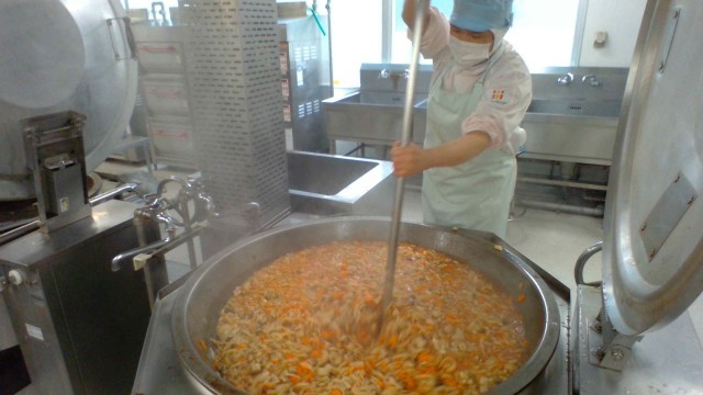 今日から図書の本とコラボした「おはなしランチ」が始まりました。給食時間の放送で、図書委員さんが本の紹介を、給食委員さんが料理の紹介をしてくれました。今日の本はシゲタサヤカさん作の『りょうりをしてはいけないなべ』です。料理中なのに嫌いなトマトが入ってくるとプププと吐き出してしまうとんでもない鍋、どうやってチキンのトマト煮を作るのでしょうか?給食の鍋(釜)は、もちろん嫌いな食べ物はありません。何でもおいしく作ってくれます。トマトが入っていても、無事においしいチキンのトマト煮が完成しました。