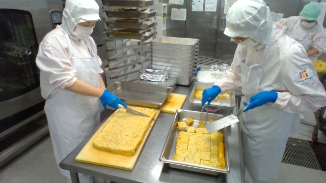 「おはなしランチ」3日目の本は『こまったさんのオムレツ』です。いつも「こまった、こまった。」と言うのが口癖のこまったさん。ある日冷蔵庫を開けると、なんとそこはオムレツ島。うまくオムレツを作れなければこの島からは出られない?!こまったさんは、無事にお家へ帰れるのでしょうか。人気のこまったさんシリーズから、今年はオムレツです。本には色々な種類のおいしそうなオムレツが登場しますが、給食ではホクホクのじゃがいもが入ったスペインオムレツを作りました。前日から楽しみにしてくれていた子供たちもいて、おいしい!と食べていました。