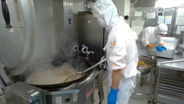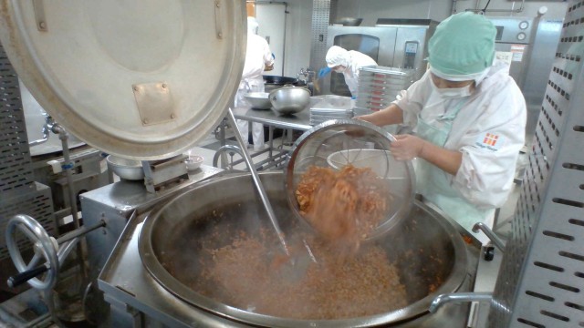 キムチチャーハンは、刻んだキムチと野菜を炒めて味付けし、炊き上がったごはんに混ぜ合わせて作ります。1年生でも食べられるよう、キムチの汁気は入れずに辛さを控えて作っていますが、ちょっと辛いという人もいれば、ぜんぜん大丈夫!もっと辛い方がいいという人もいて、辛さは人それぞれでした。給食でよく登場するししゃも、今回は1匹ずつパン粉をまぶしてフライにしました。ししゃもは卵がおいしいよね!といって食べていました。