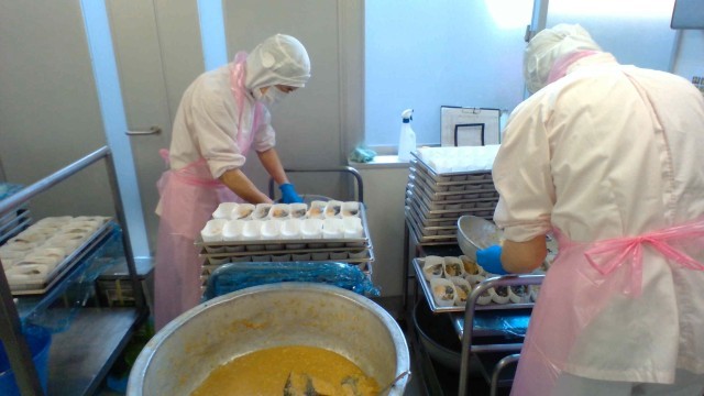 今日は1年生の給食が始まってから初めて魚の切り身を使った和食の献立でした。給食室ではなるべく味がなじむよう、朝からねぎみそだれに魚を漬け込み、1枚ずつカップに入れます。スチームコンベクションオーブンでふんわりと焼いたら、中心まで温度が上がっているかを確認して、取り出します。銀ダラは脂がのってやわらかくて食べやすい魚だったこともあり、1年生もおいしい!ときれいに食べ、また出して!というリクエストもありました。