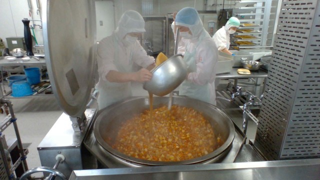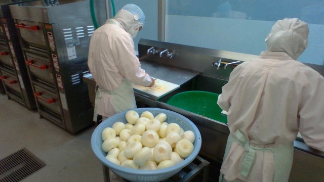 給食で使うたまねぎが真っ白でみずみずしい新たまねぎにかわりました。キャベツもやわらかい春キャベツが届いています。じゃがいもは鹿児島県産の新じゃがいもと、給食で使用する野菜も少しずつ季節がうつりかわってきています。オレンジフレンチトーストは、牛乳のかわりにオレンジジュースを使って作るフレンチトーストです。真ん中がおいしいからと最後に残していたり、シチューにつけて食べたり、楽しそうな様子がみられました。