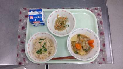 鯛めし 牛乳 肉じゃが 野菜のごま和え