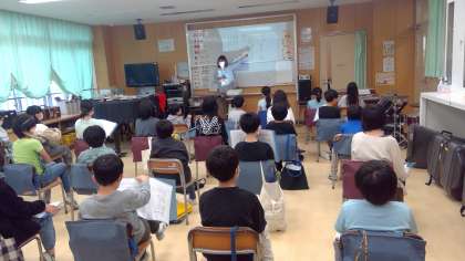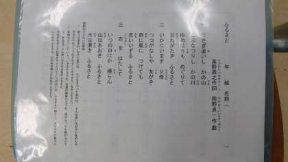 音楽では、高野辰之が作詞をした「ふるさと」を学習していました。「『ふるさとへ帰りたい。』という意味なのに、どうして歌詞は『帰らん』なんだろう?」