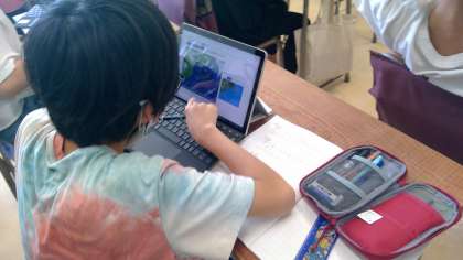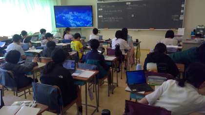 理科「天気の変化」のまとめとして、みんなで明日の天気を予想しました。一人一人が気象予報士になったつもりで、過去や現在の雲の画像やアメダスなどの気象情報を集め、自分なりの根拠をもって予想しました。