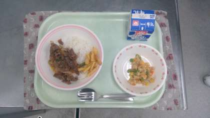 【ワンダフル給食】 ロモサルタード 牛乳 キヌアのサラダ