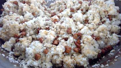 5月5日の端午の節句にちなみ、子供たちの健やかな成長を願い「鰹」や「たけのこ」「よもぎ」を使った献立にしました。ごはんは、ニンニク醤油で下味をつけた鰹をから揚げにし、甘辛いタレをからめて、わかめと一緒にごはんに混ぜ合わせました。魚が苦手な人も食べやすかったようです。よもぎもちは「食べたことない」という人もいましたが、初めての味に挑戦してくれていました。きな粉風味が気に入ったようで、よく食べてくれていました。