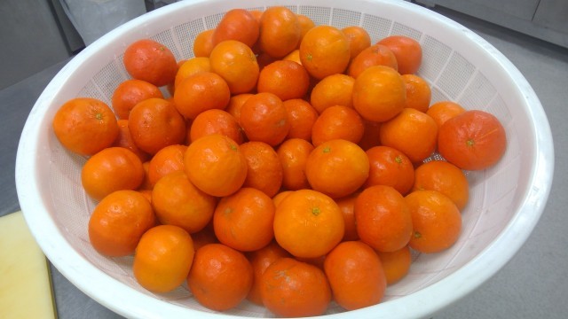 焼き肉丼は、牛肉と人参やもやし、たまねぎ、ピーマンなどの野菜を炒め、コチュジャンや醤油などのタレで味付けしています。コチュジャンの甘辛い味付けでごはんが進みます。くだものは、セミノールオレンジという種類にしました。濃いオレンジ色が特徴で、果汁も多くジューシーで甘酸っぱい味わいです。冬の終わりから春にかけて、いよかん、ネーブルオレンジ、スイートスプリング、デコポン、せとか、清見オレンジ、河内晩柑、セミノール、カラマンダリンなど、次から次へといろいろな柑橘類が登場します。ぜひ、それぞれの柑橘の違いを味わってもらいたいと思います。