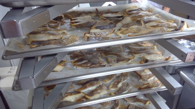今日の魚は鯛です。スチームコンベクションオーブンでカリっと焼き、すりおろした玉ねぎとしょうゆなどを混ぜて作ったステーキソースをかけました。くせのない淡白な味わいで子どもたちも食べやすかったようです。切干大根は、さつま揚げと一緒に甘めに煮つけました。1年生は初めて食べる子もいたようですが、給食を通して色々な食べ物を知り、味わってみてほしいと思います。