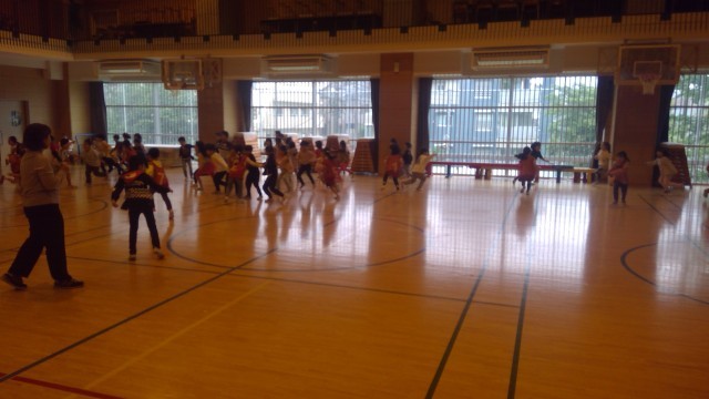 雨で遠足が延期になってしまったので、学年でレクリエーションを行いました。
