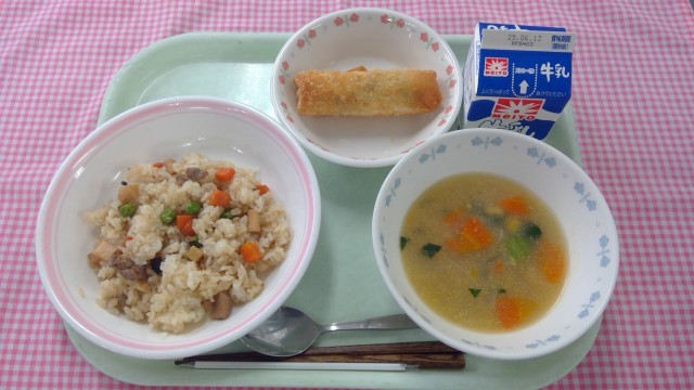 【献立】中華混ぜごはん、牛乳、中華コーンスープ、パリパリひじき