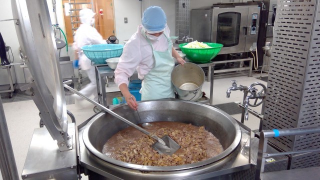 今日のすき焼き丼には、牛肉や長ねぎ、しらたきの他に「板麩」を使いました。「庄内麩」とも呼ばれる麩で、板状に焼いて作るのが特徴です。すき焼きに麩を入れると、牛肉のうまみを吸っておいしいのです。デザートは今から旬を迎える小玉スイカです。今日は「ピノ・ガール」という品種で、種がとても小さく、種ごと食べられるそうです。食べられると聞いても、種を食べるのはちょっと抵抗があるようでしたが、とっても甘くておいしいスイカだったので、皮のギリギリまで食べていました。