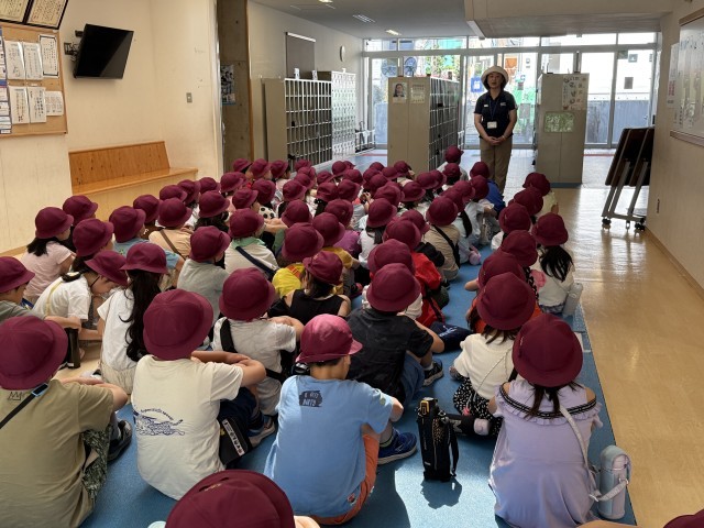 生活科の学習で、地域にはどのような場所があるのか、どのような人々が働いているのかを知るために探検にいきました。