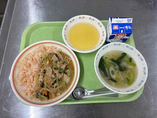 ルーローファン、ルォボタン、オーギョーチ風ゼリー、牛乳