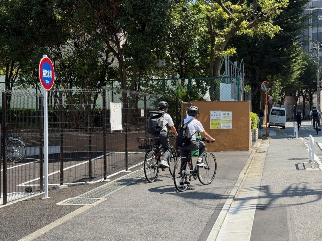 本日は、青山キャンパス初日ということもあり、校内見学後に下校です。暑い中でしたが、自転車通学の生徒も、渋谷区教育委員会関係者や先生方に見守られながら安全運転で下校した様子です。