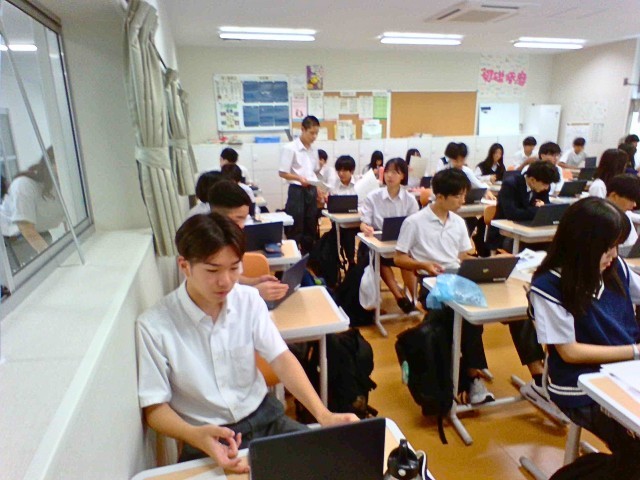 9月から生徒や教職員が使用するタブレット機器が替わりました。本日1時間目の学活の時間に2年生と3年生が新しい端末のセットアップを行いましたが、少し時間がかかっている様子です。新しいタブレットは性能も向上しています。大切に使ってください。