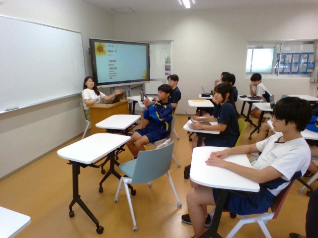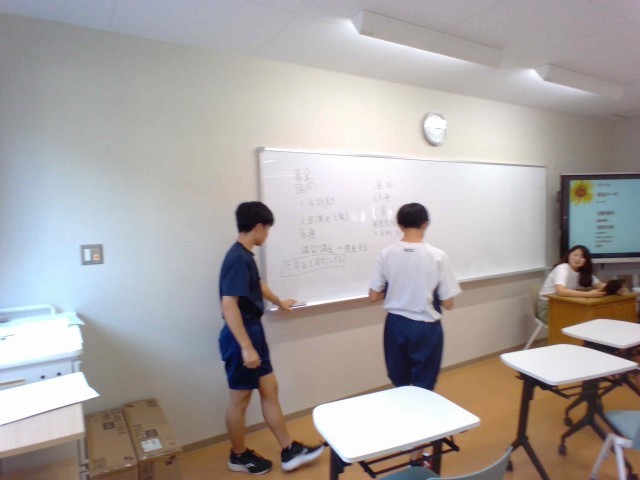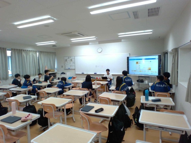 3年生のテーマプロジェクトの様子です。グループに分かれて、サンロッカーズ渋谷とコラボした支援活動に向けて、リーダーを中心に協議しています。