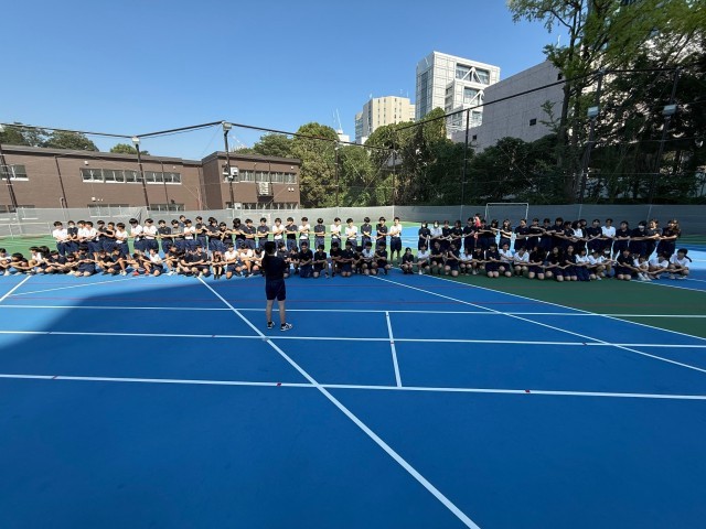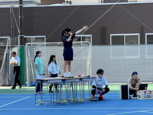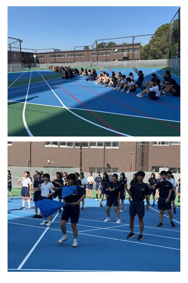 体育祭のマスゲームに向けて最初の全校練習を行いました。暑い日でしたが3年生のリーダーが大変良くがんばっています。