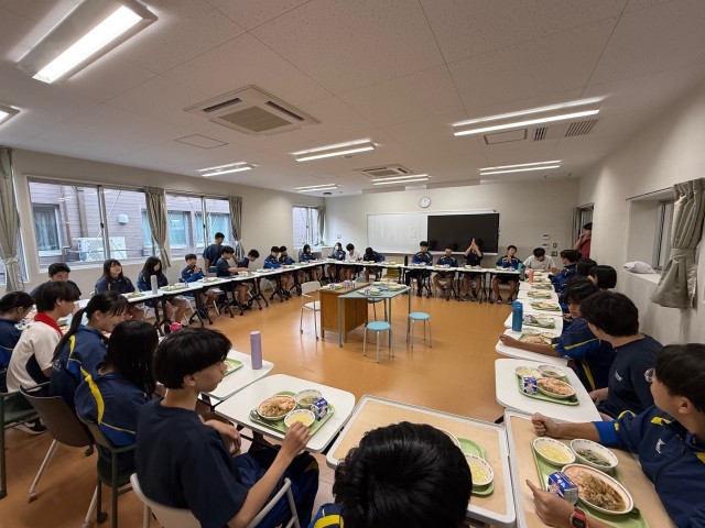 広尾中旧校舎のランチルームを活用して好評を得ていたランランランチですが、保健給食委員会の提案・協力により青山キャンパスでも継続しています。本日は3年生です。もとはコロナ禍において、グループでの喫食が制限された後に、急にグループでの喫食は気まずい・・・という思いを少しでも変えてもらおうと保健給食委員会が実施してくれていました。なお、このランランランチはさらに進化して継続します!ぜひ楽しみにしていてください。