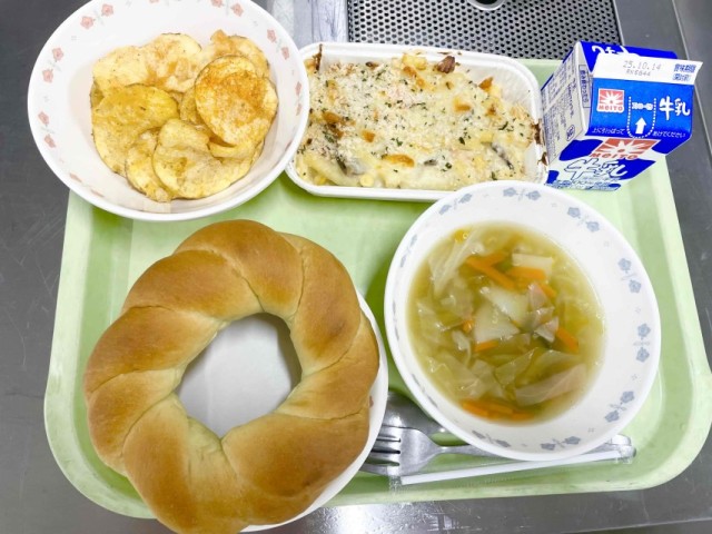 明日葉リングパン マカロニグラタン スパイシーポテト 野菜とキヌアのスープ