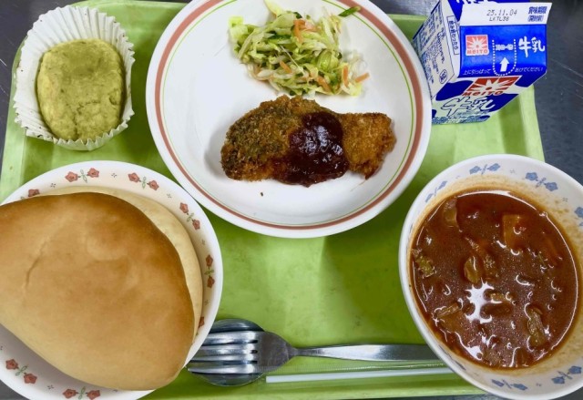 今日はセルフスタイルのサンドです。広尾中ではセットされたバーガーを提供することが多かったですが、青山キャンパスでは食数も今後増えていきます。セルフスタイルのかたちも増えていくと思いますが、みなさん各々好きなように組み合わせをつくって食べてくれていました。スイートポテトは「シルクスイート」を使用しています。ほぼ100%さつまいもで作りました。