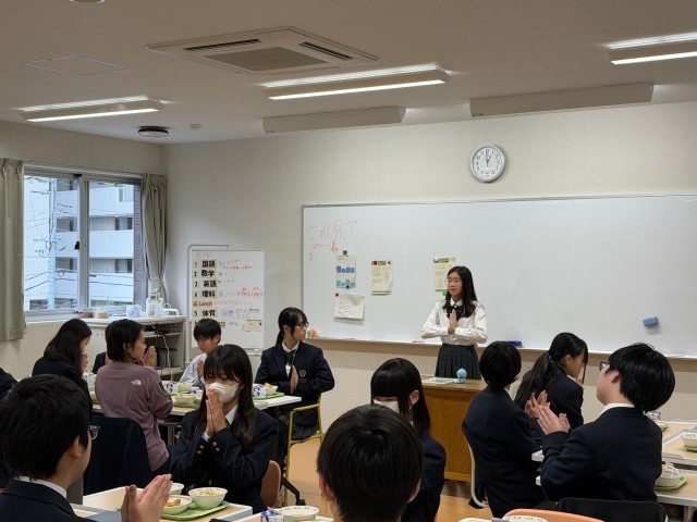 本日のランランランチは、2年1組と1年1組が交流しました。もちろん先生方も学年を越えて入っています。2年生と1年生が並んで「いただきます」のあいさつをする姿はとても微笑ましいです。