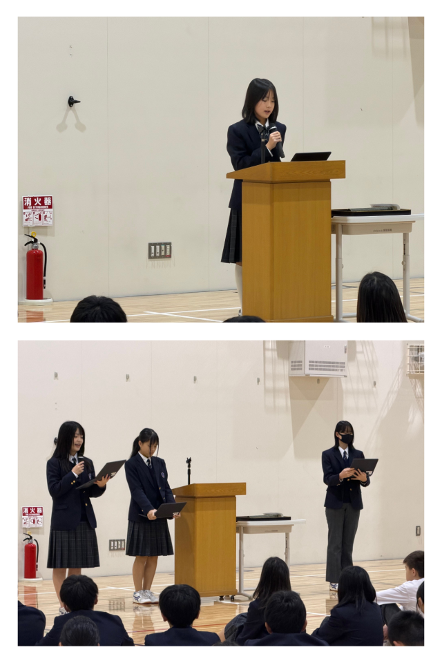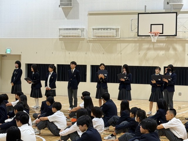 本日は生徒会朝礼からスタートです。生徒会本部、専門委員会委員長、美術部から諸連絡がありました。美術部からは広尾中公式マスコットキャラクターのイメージ募集に関するアンケートのお願いがありました。ぜひ多くの生徒皆さんの協力をお願いします。また、生徒会朝礼の後に表彰を行いました。卓球部は、渋谷区新人大会男子シングルス準優勝、女子シングルス準優勝、女子シングルス第5位の成績を収めました。おめでとうございます!
