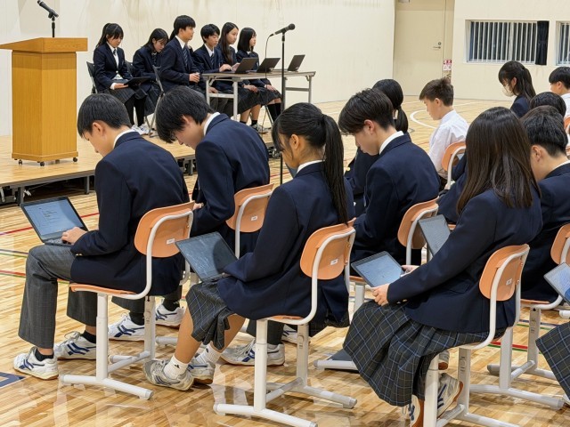生徒会、各専門委員会とも会長・委員長が2年生中心となり、生徒総会が開催されました。各クラスから出された質問や意見に対して、会長・委員長が真摯に回答しました。質問者のマナーも大変良かったです。より良い学校づくりのため、1・2年生ががんばってくれることを期待します。