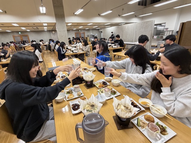 男子はみんなでカードゲーム、女子はお水で乾杯!