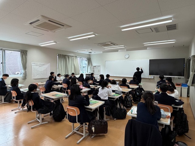 しばらく学活や集会が続いた1年生ですが、いよいよ教科の授業が始まりました!写真は上から1年1組英語、1年2組数学の様子です。初回ということで授業の進め方等オリエンテーション的な内容ですが、教科の先生の話を真剣に聞き、時には笑顔を見せながら授業をがんばっています。