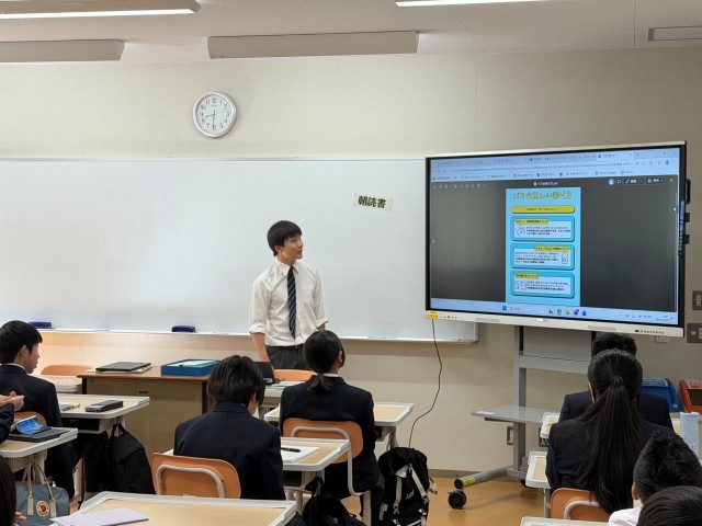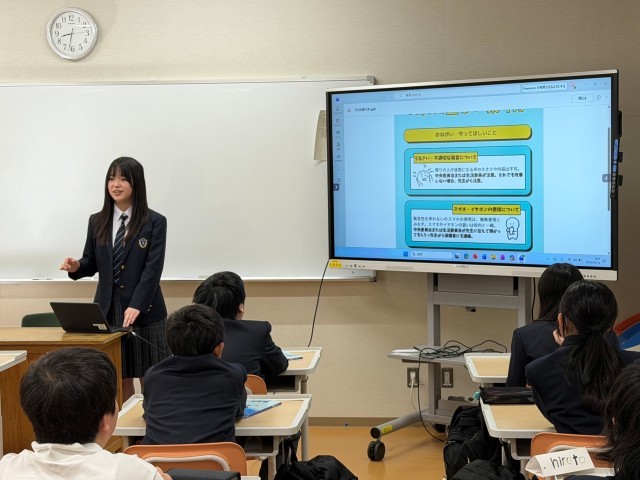 スクールバス車内のマナーについて昨年から課題となっています。各学年の学級委員会や中央委員会で議論を重ね、本日の朝学活の時間に1年生の教室で、3年生の学級委員がスクールバスのマナー向上について啓発プレゼンをしてくれました。生徒自身が課題意識を持って改善に動いてくれていることが広尾中の良さです。スクールバス利用者全員がマナー向上を心がけるようにしましょう!