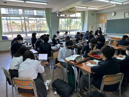 3年生は、修学旅行班行動のコース決めを行っていました。修学旅行前の最も楽しい時間の一つですね。様々な寺社仏閣の名前が挙がっていました。3年生の皆さんが関西方面に行く日程は、観光客の増加や土日ということもあり、相当な混雑が予想されます。余裕を持って、みんなが楽しく、マナーよく満喫できる修学旅行を目指してプランを練ってください。