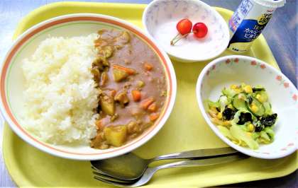カレーも朝から玉ねぎをよく炒め、食缶を開けたときにバターが香るように最後に加えています。食べやすい献立になっています。運動会の疲れも吹き飛ばし、のりきってほしいと思います。