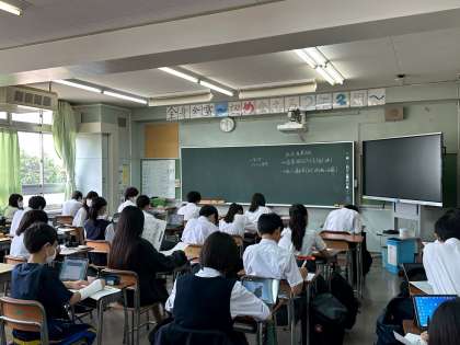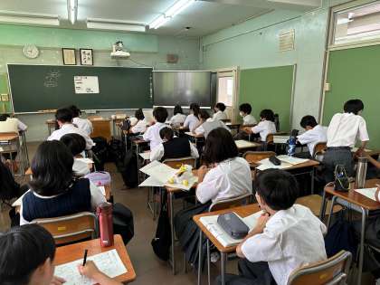 本日1年生の学活ではシブヤ未来科の授業として、「自分の好きなもの・こと」についてマッピングづくりを行いました。自由な発想で次々とマッピングを完成させて、探究を深める活動でした。写真一番下は2年2組の様子で、新たな班長選びを真剣に行っていました。