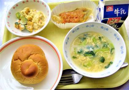黒砂糖パン 白身魚のエスカベッシュ かぼちょのサラダ 洋風卵スープ