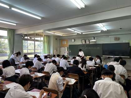 3年生の学活では、内申点の計算や年間進路計画表の作成に取り組んでいました。定期考査の結果に一喜一憂する様子も見られ、進路に向けての意識が変化してきている様子です。