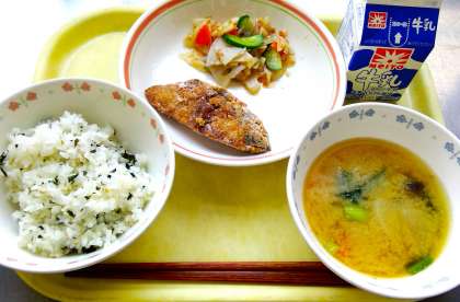 ごはん ブリの竜田揚げ かぶのおかかサラダ 田舎汁