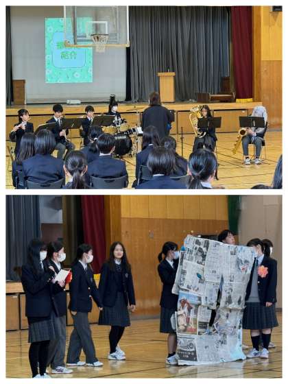 新入生歓迎会の後半は、部活動紹介です。各部活動が短時間で工夫を凝らした紹介をしてくれました。1年生は来週から仮入部が始まります。