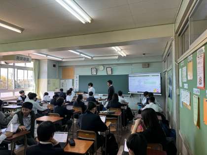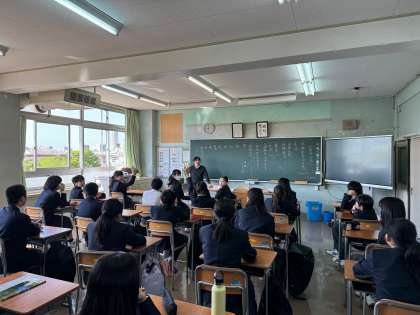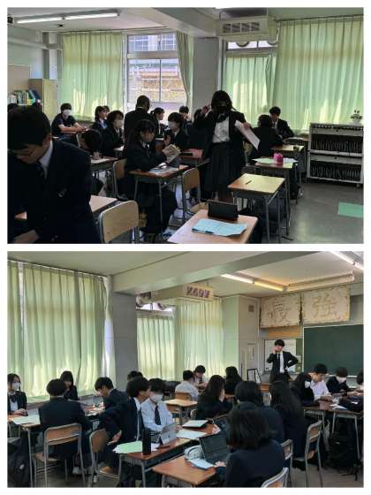 大変天気の良い週明けとなりました。1時間目はどの学年も学活からスタートです。1年生は委員会・係といった学級組織決め、2年生は学習の目標づくり、3年生は班編成と早くも修学旅行コース決めに取り組んでいました。