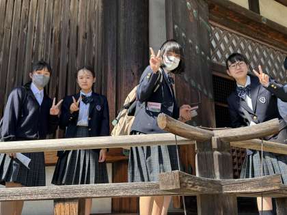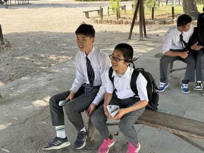 天気に恵まれました。法隆寺見学途中にひと息です。