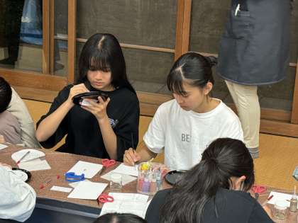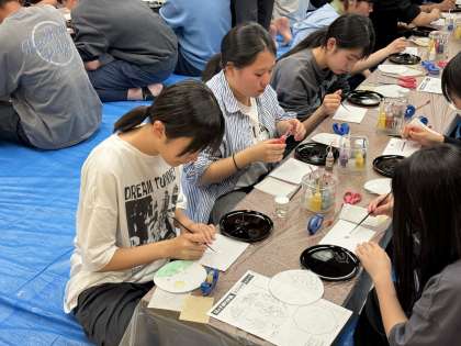 漆器体験の絵付けの様子です。