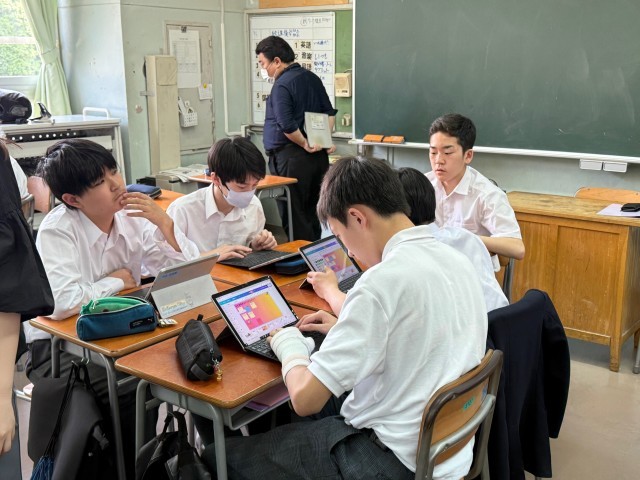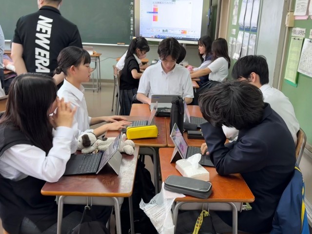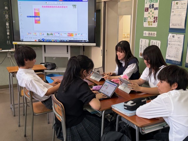 3年生のテーマプロジェクトの様子です。サンロッカーズ渋谷スタッフの方にも来校していただきました。地域課題についてグループごとに洗い出しています。